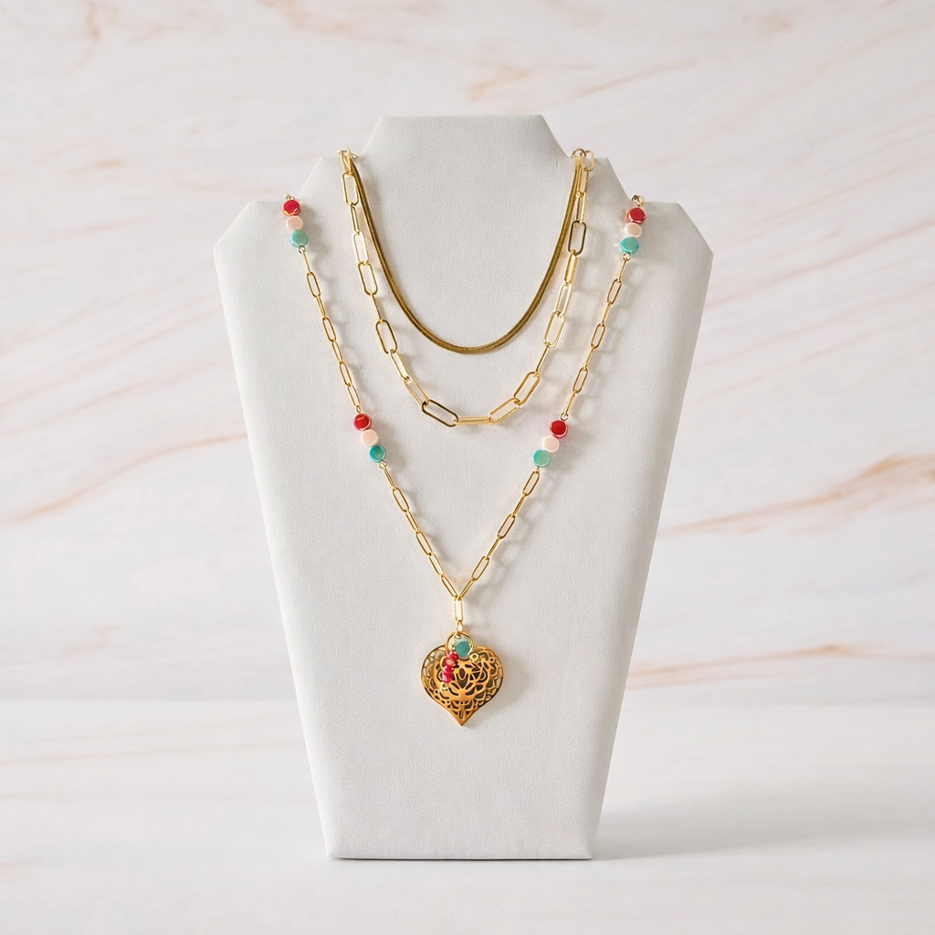 Set Corazón Turquesa y Rojo – una combinación vibrante y romántica que captura la esencia del amor tropical.
